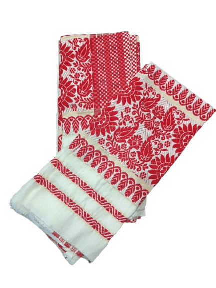 The Assamese Gamosa is a symbol of Assamese culture, respect, and tradition. Handwoven with fine cotton threads, each piece features distinctive red borders and intricate motifs that reflect the rich heritage of Assam.